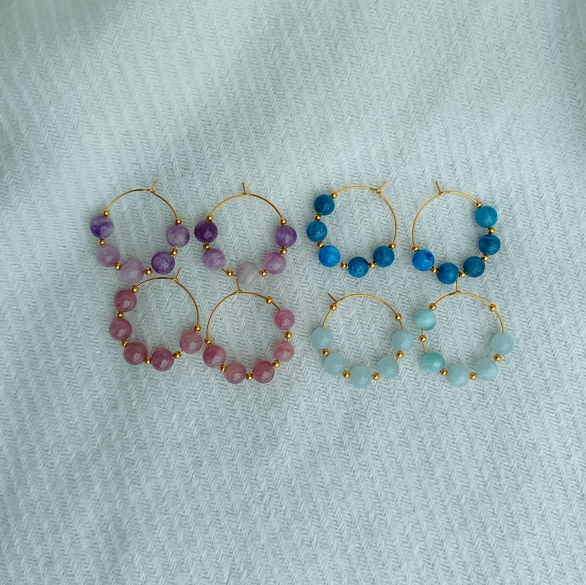 Craquez pour les créoles Olivia en acier inoxydable et leurs pierres naturelles. Choisissez la pierre qui vous convient parmi la Lépidolite, le Quartz de Madagascar, l'Angélite ou l'Apatite.